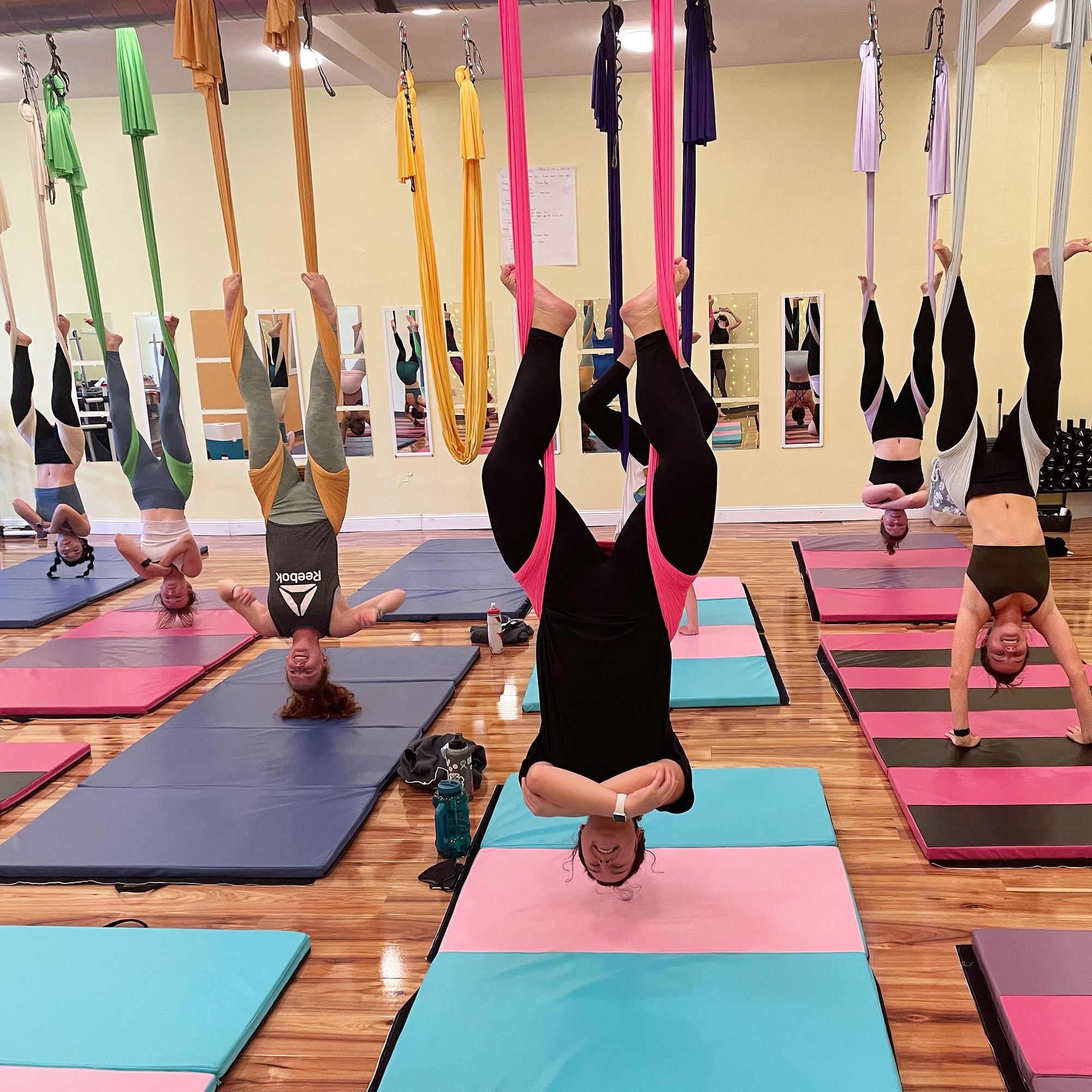 Aerial Yoga, Yoga, and fitness. Our customers are everyday people that want to move their body in an encouraging and fun community.