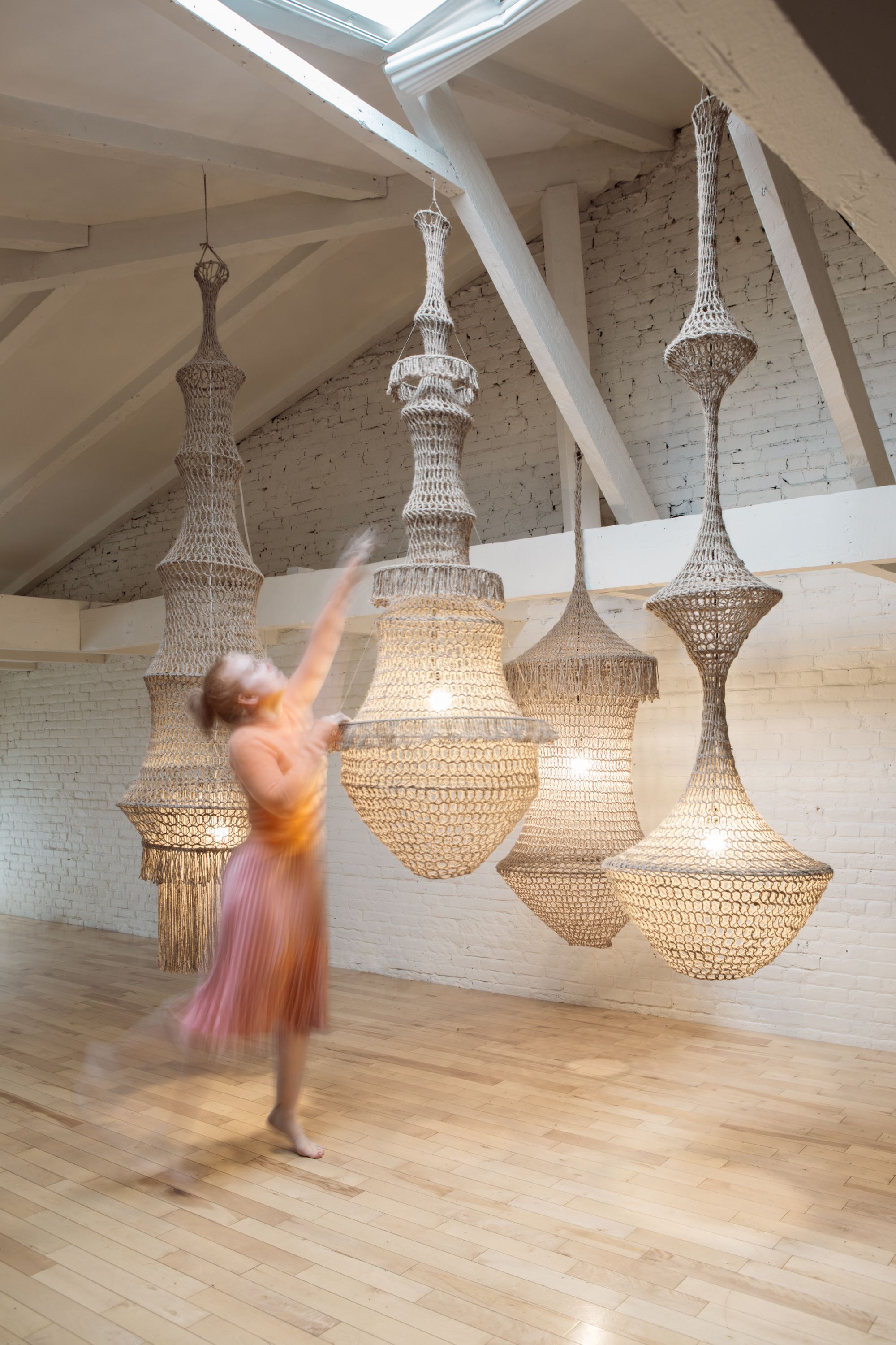 Amulet arrived in my life as a surprise; I had no commercial intentions at the start. I exhibited my final academic (Concordia University) work in a window in Old Montreal, and the media contacted me. My daring installation of giant jute chandeliers and neon pink tassels caught their attention! Our televised conversation focused on the passing of contemporary textile heritage through the generations. The snowball effect then began in 2013, and now I have made it my full-time job with two part-time employees!