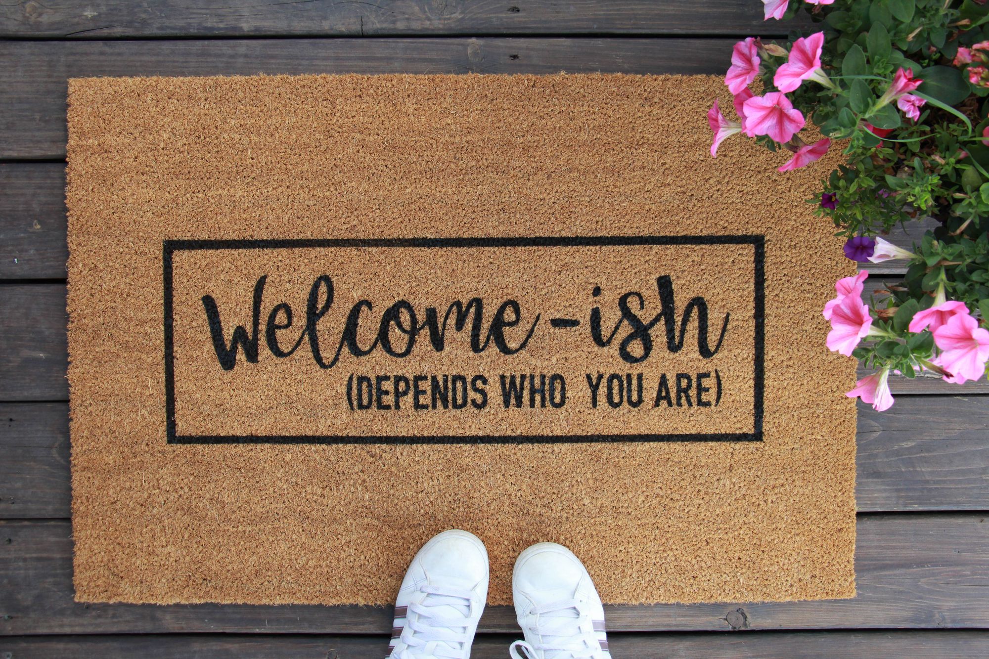 I have always been crafty, and after months of looking for a funny doormat for our front door, I decided to make one. Once friends and family saw them, they wanted them too. After WAY more interest than anticipated, my husband told me to go big or go home. I ordered 200 doormats, took over his shop, and hoped that within the year, I'd sell out. Within weeks, I found myself sending doormats all over our province and ordering more mats. Knowing that people believed in my products and continue to laugh and smile when they see my mats are everything.