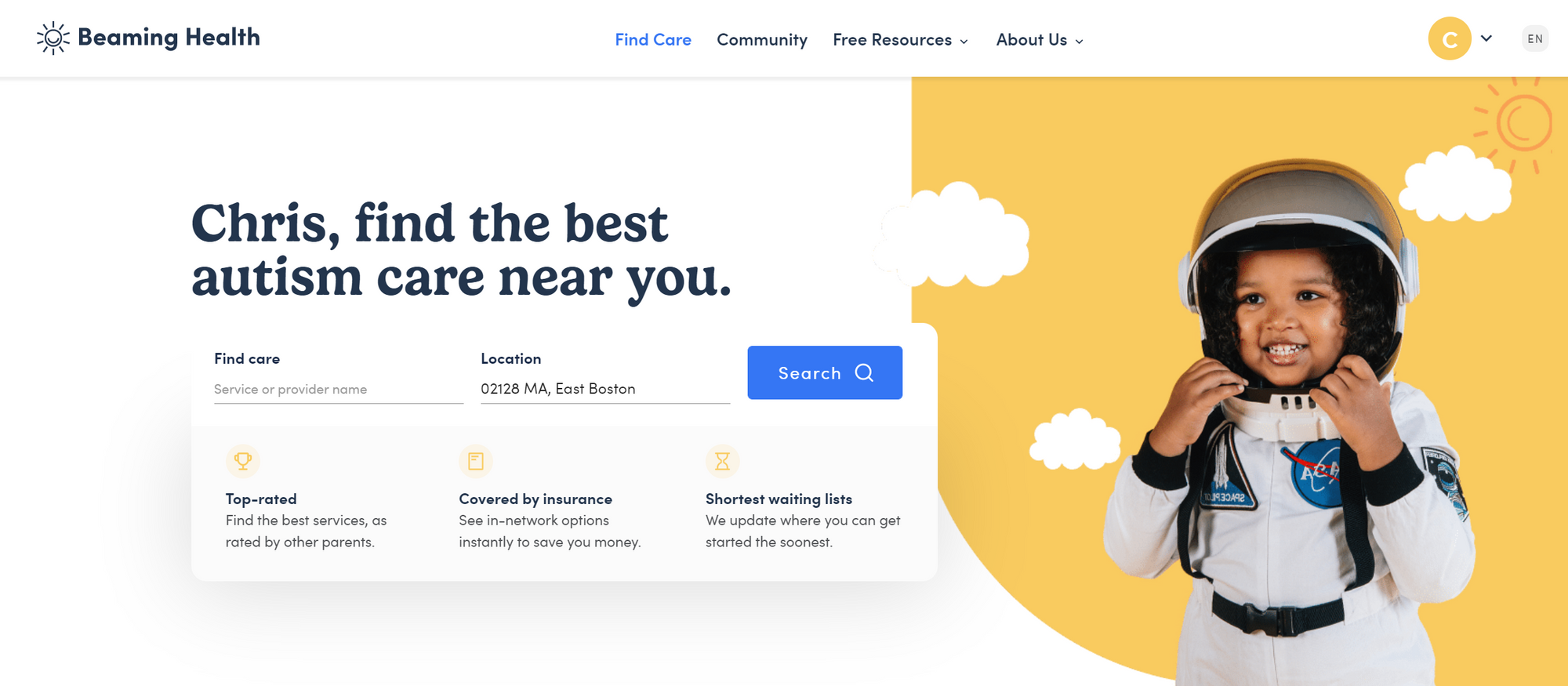 Beaming Health connects parents of children with autism with the therapists, dentists, pediatricians, and camps they need to be their best. We collect parent reviews, insurance information, and waiting lists in order to give parents a complete look into who the best options for their child are. We also publish expert-reviewed content and host an online community to get parents the answers they're looking for.