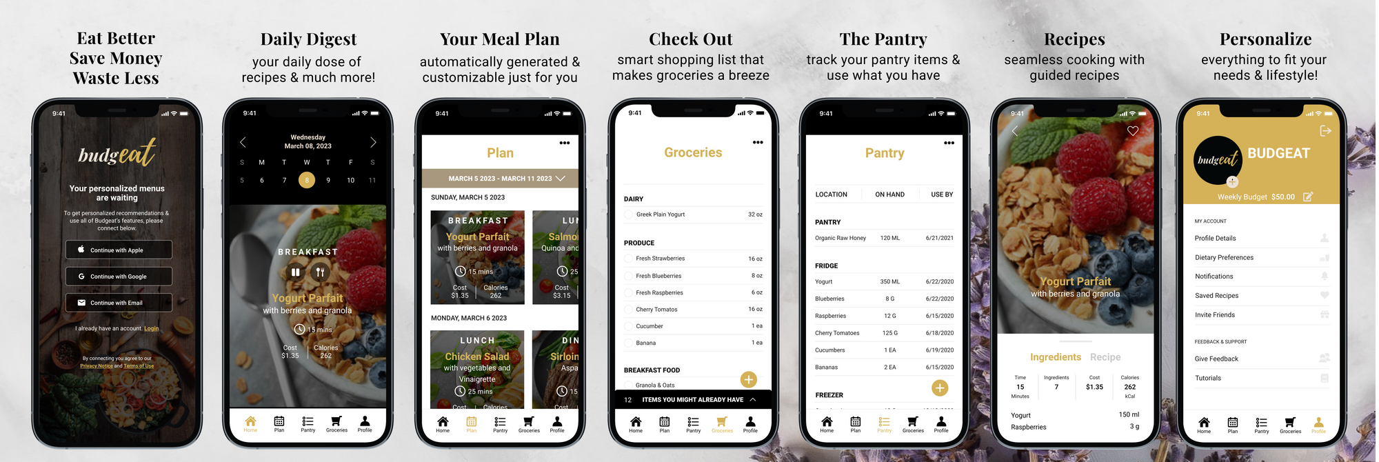 Budgeat is an innovative food technology company with an exciting new mobile application for consumers. We’re focused on helping individuals eat better, save money, and waste less while cooking and eating at home. Our company’s groundbreaking app generates personalized meal plans from a vast library of recipes that consider an individual’s budgetary, dietary, taste, and cooking preferences. Plus, it takes into account the ingredients people already have on hand, ensuring that nothing goes to waste in the kitchen. Budgeat even generates easy to use grocery lists to make the shopping experience a breeze. By combining all these features in an intelligent manner we aim to leverage technology to meaningfully improve the experience of anyone who cooks and eats at home.