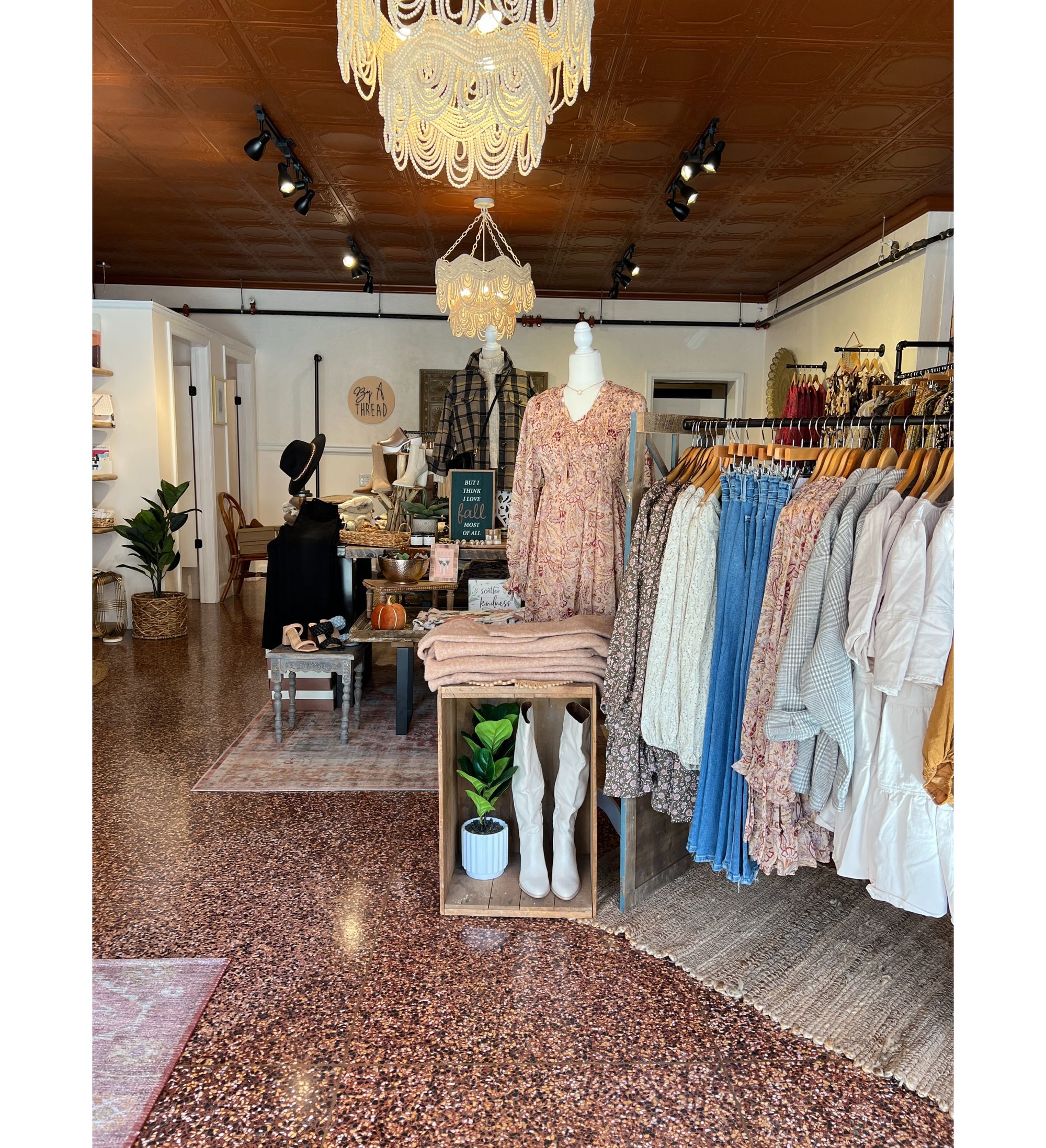 By A Thread is a women’s clothing boutique specializing in pieces for what we like to call the “everyday girl.” By that, we mean styles that are fashionable but approachable. Pieces that are unique and feminine but don’t leave you asking yourself, “how would I even wear this?” Our second business, Thread Baby, is a clothing and gift boutique for toddlers and babies with a complimentary modern style to By A Thread.