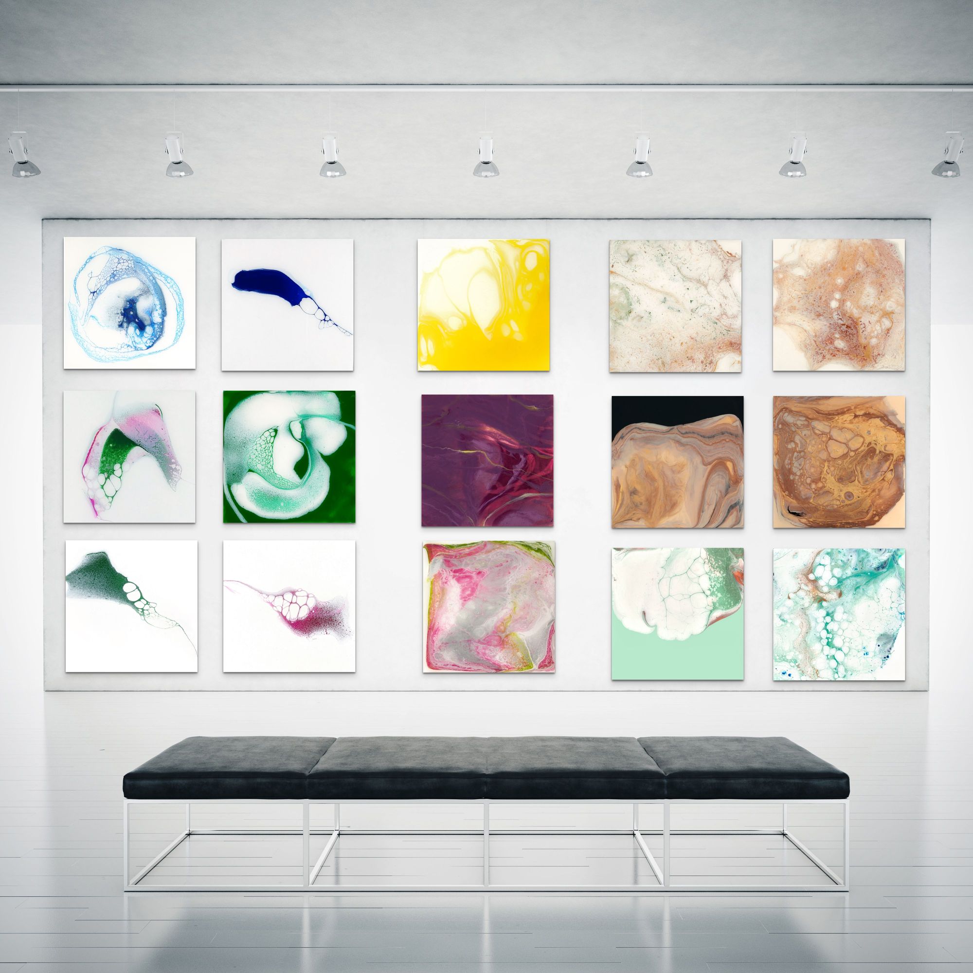 I am an abstract artist specializing in pour painting. A few years ago, I started dabbling with this style of painting and fell in love. That was also about the time when I realized I wanted to take my art to the next level and really pursue it as a business. I am currently selling my art online through my website and at in-person markets, and at various art events. I also have art listed on a few different online art markets, and some of my art is available for rent in the film and tv industry, and I am also working with a wholesale art company, Level57, that works exclusively with interior designers and the hospitality industry.