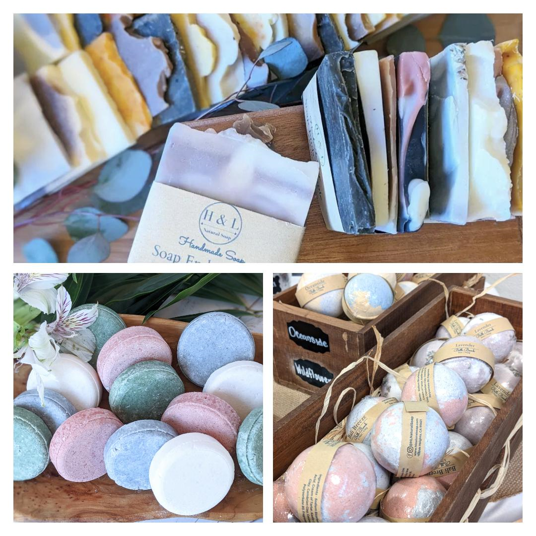 H & L Natural Soap is a family-owned business that specializes in making Bath & Body Products that focus on natural ingredients that are both great for your skin and the planet. We offer a variety of Cold Process Soaps, Shampoo Bars, All Natural Bath Bombs, and Lip Balms. Each item is handmade in small batches using Plant-Based Oils, Plant & Clay-Based Colorants, Pure Essential Oils & Phthalate-Free Scents.