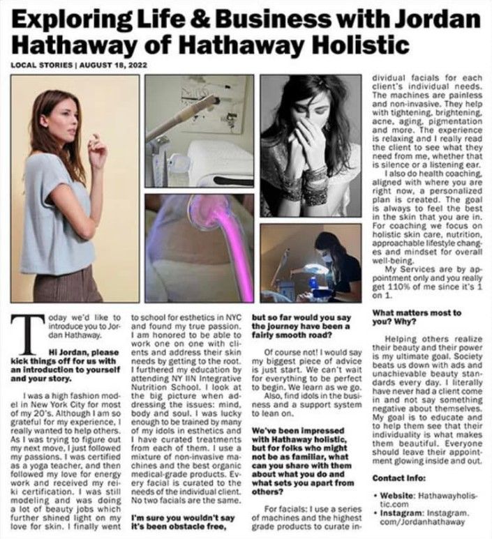 Hathaway Holistic focuses on healing skin and within. A bespoke holistic high-tech facial spa, as well as individualized integrative coaching services. I am a licensed esthetician, certified yoga instructor, and reiki master, and I completed my Integrative Health Coach certification from the NY Institute for Integrative Nutrition. As a facialist, I provide unique, high-tech, performance-driven facials.