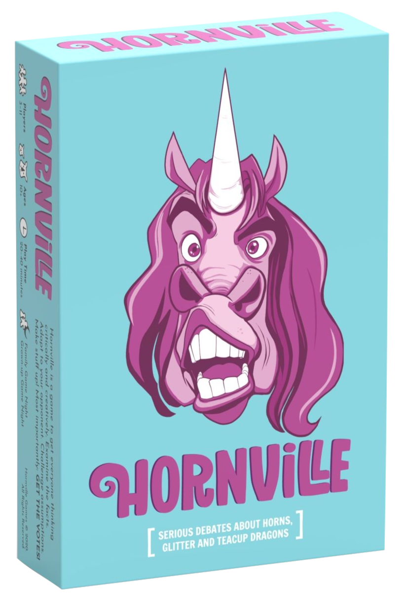Hornville was born out of the idea that we could use more critical thinking and empathy in this new world of constant divide, access to infinite information, and disinformation. Critical thinking is something that grows through practice and exposure to different styles of thinking. That's where Hornville comes in; it’s a simple tabletop game about bringing fun to better decision-making through serious arguments about horns, glitter, and teacup dragons. It’s the gamification of critical thinking made for the classroom, the avid board game group, and perfect for family game night.