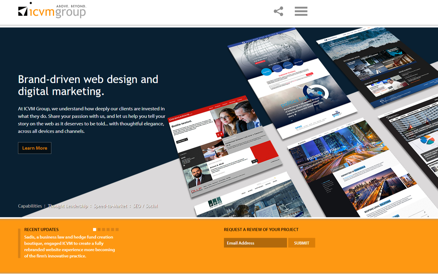 ICVM Group provides brand strategy, web design, digital marketing, and marketing support services to a diverse array of prominent national and international firms and organizations. Our core focus is on professional services industries, most notably in legal, finance, consulting, and other expertise-driven fields.