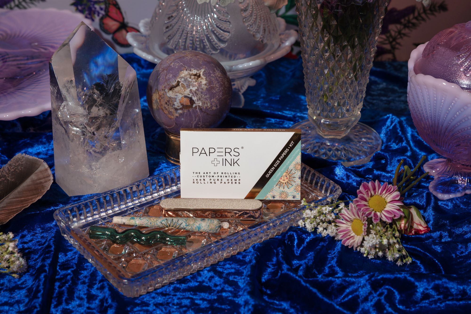 I founded Papers + Ink Studio because I wanted to build an entity that celebrates creativity and inclusivity through design and is a vehicle to support the community. I've always loved consuming plant-based medicines like cannabis, from both a medicinal and recreational standpoint, and joints have always been my favorite way to consume, and joints were so boring. I noticed that there weren't any high-quality, well-designed, and consciously produced rolling papers made in the United States that celebrate uniqueness. I was motivated to create a line of high-quality and stylish rolling papers and accessories for people that like to have fun, are aesthetically inclined, and seek luxurious experiences without forgoing function.