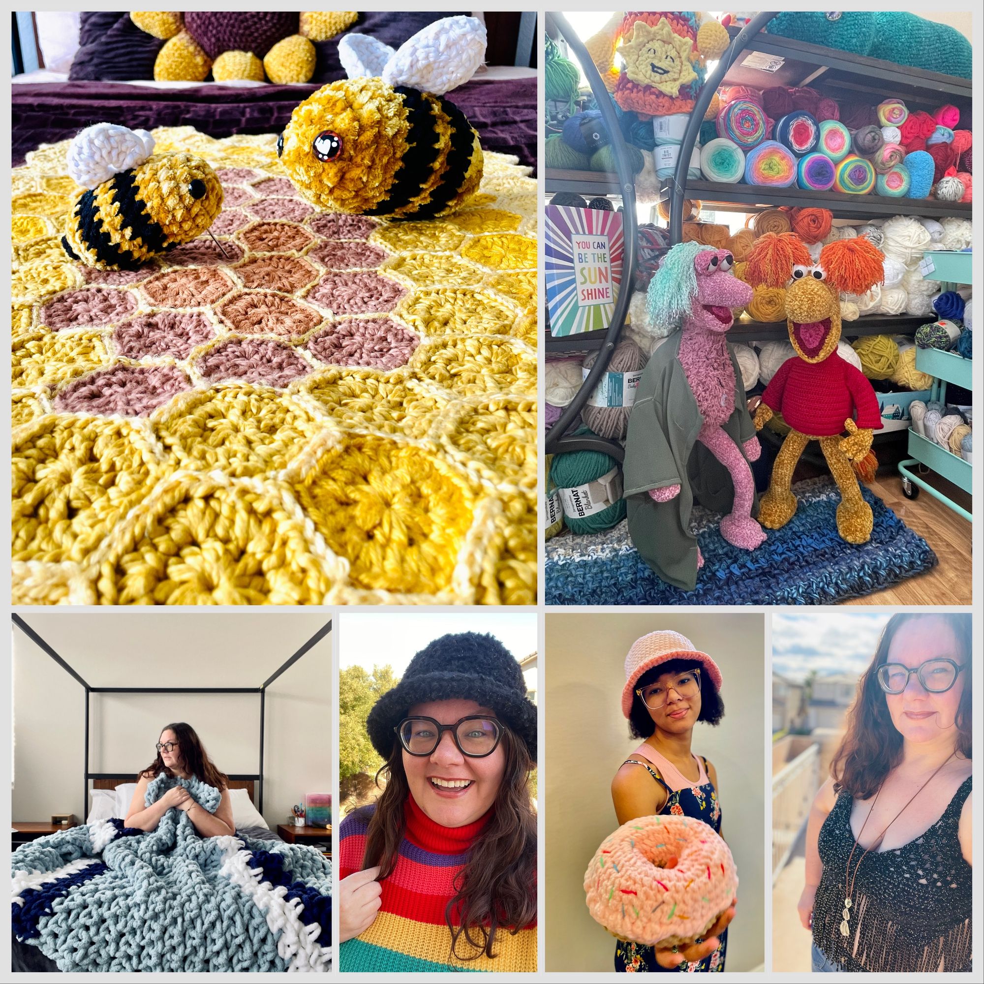 My name is Sarah, and I'm a mom. I started crocheting at 18 with friends in a dorm to help calm the stress of finals. And when I started my family, I started crocheting cute babies' and toddlers' winter accessories for photos. Over the years, my work has evolved to include plushies, earrings, clothing, and a little of everything in between.
