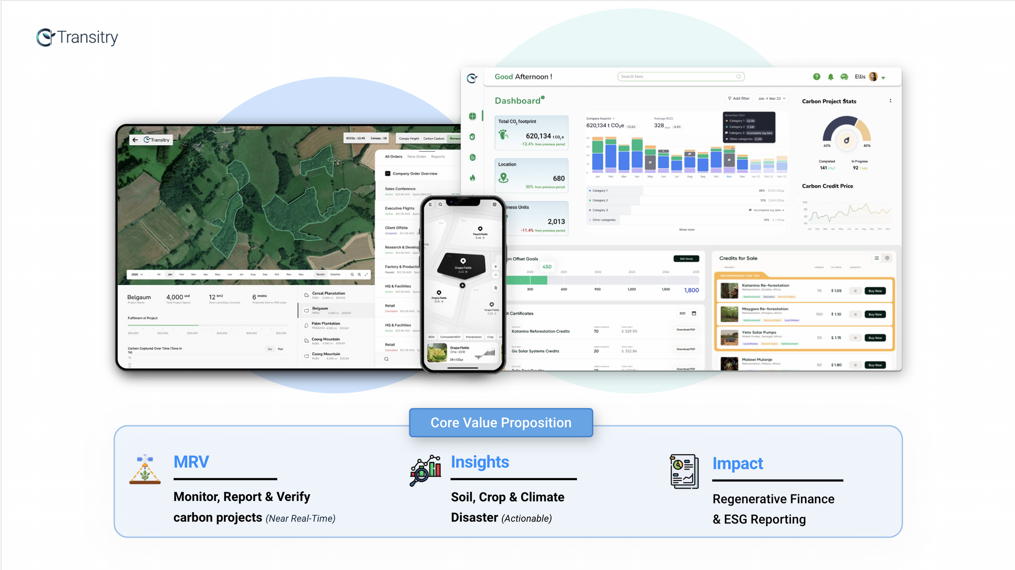 Transitry is a climate-tech startup committed to bridging the financial gap that nature-based solution requires to remove enough carbon dioxide from the atmosphere to mitigate climate change. It has developed a reliable and scalable Digital - Measurement, Reporting, and Verification (MRV) system supercharged with AI to implement carbon governance and give access to green cash flow, which is necessary for the start and successful completion of decarbonization projects. Its Digital MRV concept works in practice by looking at how a project affects both the past and the future, reporting on the procedures that project owners have actually used in order to facilitate payments, and offering a rapid and open credit approval process for verifiers who require it. It does so by scanning project areas with active near real-time satellite imagery and smart sensors by applying proprietary AI algorithms, and using continuous monitoring of carbon activity, giving businesses sustainability insights and potential impact reports in their supply chains.