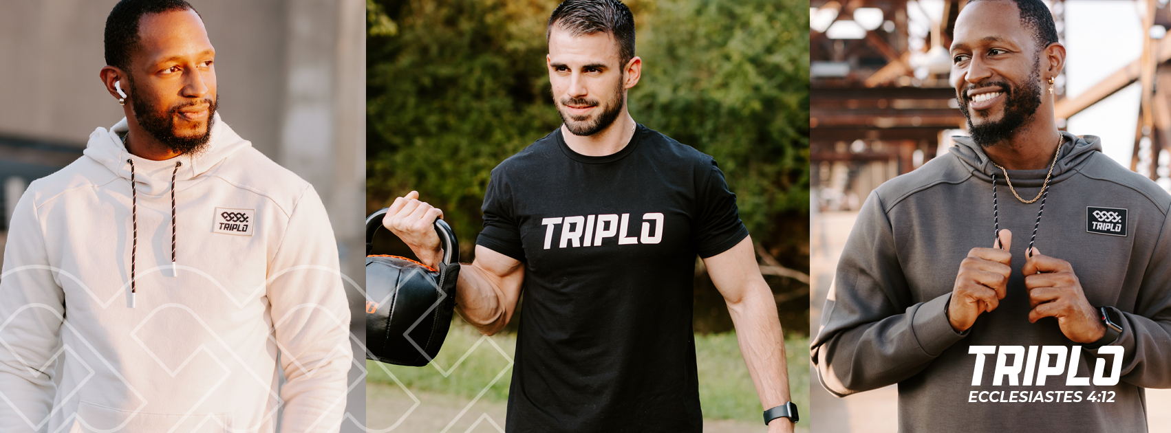 Triplo is a Christian apparel brand based on Ecclesiastes 4:12. "And though a man might prevail against one who is alone, two will withstand him—a threefold cord is not quickly broken." Our current line includes hoodies, joggers, t's, shorts, hats, and a women's line coming soon. The brand is minimalist, custom wear. It is based on three things. Great gear that is top of the line creates a genuine conversation about Jesus and gives back to missions around the world.